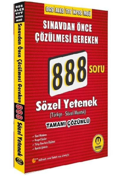 Tasarı DGS ALES TYT KPSS MSÜ Sözel Yetenek 888 Soru Bankası Çözümlü