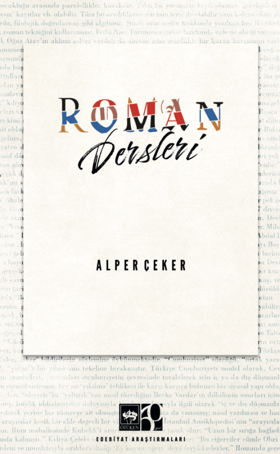 Çin yıllığındaki Hunlara ait Türkçe beyit, Türk edebiyatının tarihinin iki bin yıldan daha eski olduğunu gösteriyor. Fakat bu köklü edebiyatın eleştirisi cılızdır hatta Türk romanı üzerine yazan nitelikli kalemlerin sayısı bir elin parmaklarını geçmez. Alper Çeker'in Roman Dersleri adlı kitabı bu eksiği kapatmayı amaçlıyor. Yazar metinleri ele alırken yöntem olarak bir terkibi kullanıyor. Bu terkip; Rus Biçimciliği, Yapısalcılık ve Göstergebilim gibi biçimci yaklaşımların açığını yorum geleneği ile tamamlayan bir yöntem.