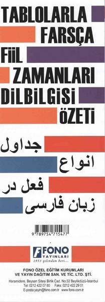 Farsça'yı öğrenmeye yeni başlayanlar için hazırlanmıştır. Farsça dilbilgisi özetini örnek cümlelerle anlatmıştır. Katlanır kortonet şeklinde olması her an elinizin altında olmasına kolaylık sağlamıştır.